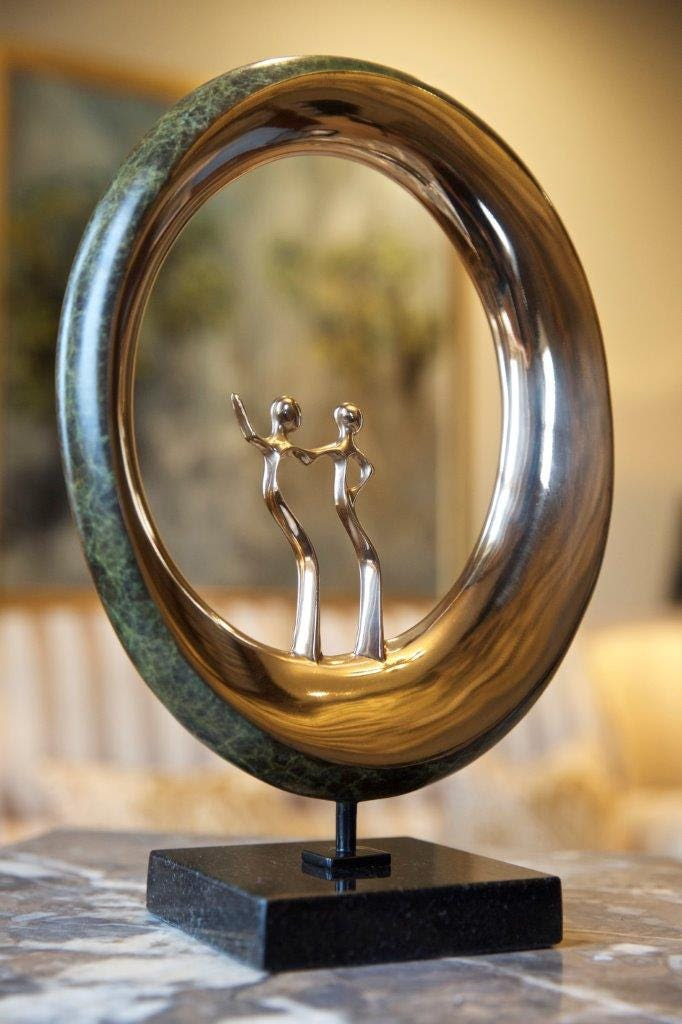 This philosophy finds its clearest expression in Friendship Into Eternity. Two figures stand together within an unbroken circular form — neither dominant nor subordinate. The circle signifies continuity rather than enclosure: time without beginning or end. The figures remain distinct, upright, and present, strengthened by proximity rather than absorbed by it.